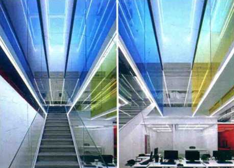 動態(tài)空間引導(dǎo)人們從“動”的角度觀察周圍事物,把人們帶 到一個(gè)由空間和時(shí)間相結(jié)合的“第四空 間”在展廳設(shè)計(jì)中往往應(yīng)用具有動態(tài) 形式的元素形成空間動感.比如利用光 影的層次形成空間的動感,利用自然光 線的變化形成空間的動感,利用樓梯等 形式形成空間的動感,利用對比強(qiáng)烈的 圖案和線條形成空間的動感,等等