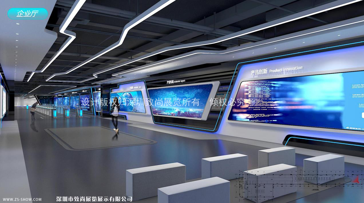 由我司設(shè)計(jì)施工的湖南藍(lán)思科技展廳從設(shè)計(jì)-落地施工效果呈現(xiàn)